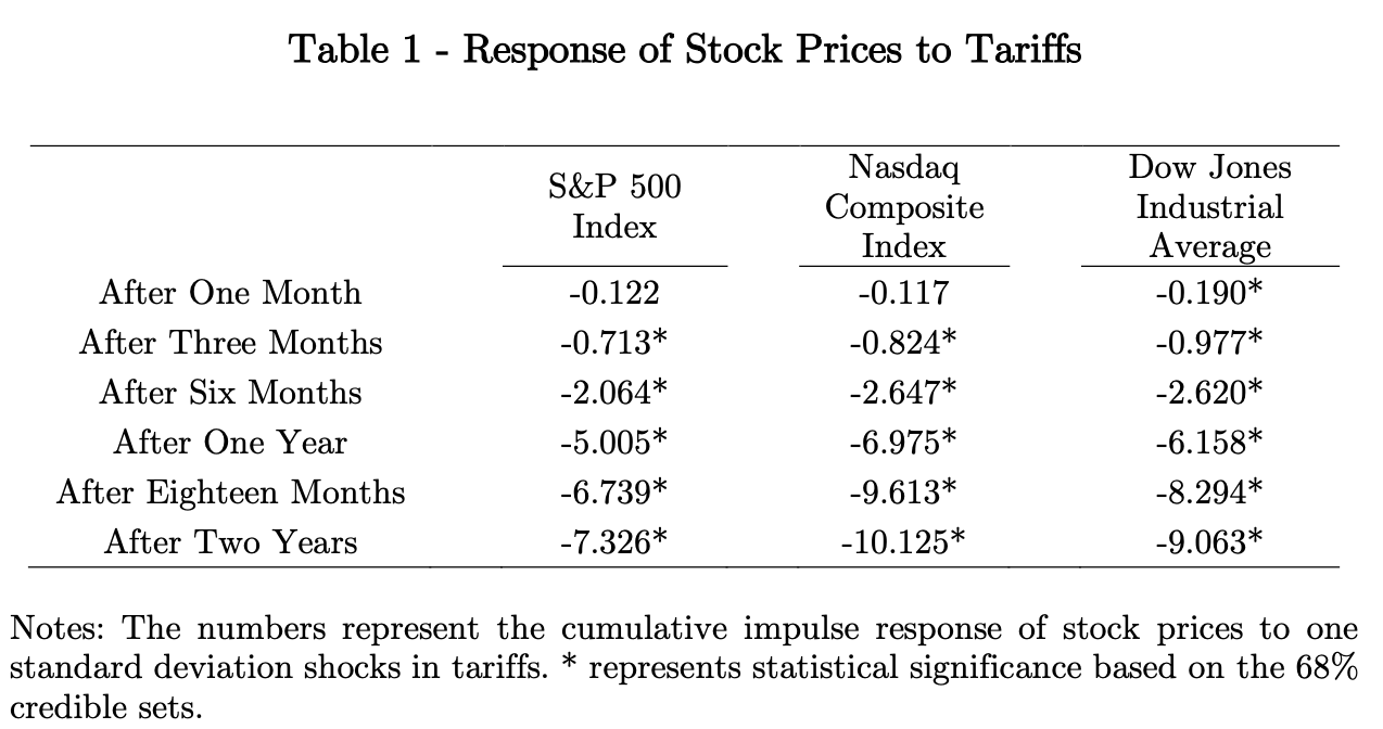Source: “US Tariffs and Stock Prices”, Hakan Yilmazkuday, May 25, 2025 https://papers.ssrn.com/sol3/papers.cfm?abstract_id=5215769